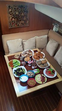 Καταρχήν πρέπει να μεριμνήσετε να υπάρχουν τρόφιμα που εύκολα να μαγειρεύονται όπως μακαρόνια, αυγά και τοπικά υλικά που ίσως να μην χρειάζονται ούτε και ψυγείο (σνακ), καθώς και υλικά για ένα πλούσιο πρόγευμα. Λίγες κονσέρβες πάντα χρειάζονται καθώς και έτοιμες σάλτσες. Τα παξιμάδια είναι η πιο φιλική τροφή των ναυτικών και των φίλων που ταξιδεύουν με αυτούς. Τα φρούτα είναι επίσης πολύ βοηθητικά αφού προσφέρουν ενυδάτωση. Μια πιατέλα με κυπριακά και άλλα τυριά, τα φρούτα και παξιμάδια θα τονώσουν την παρέα και θα λειτουργήσουν σαν ένα χαρούμενο και απολαυστικό γεύμα.
