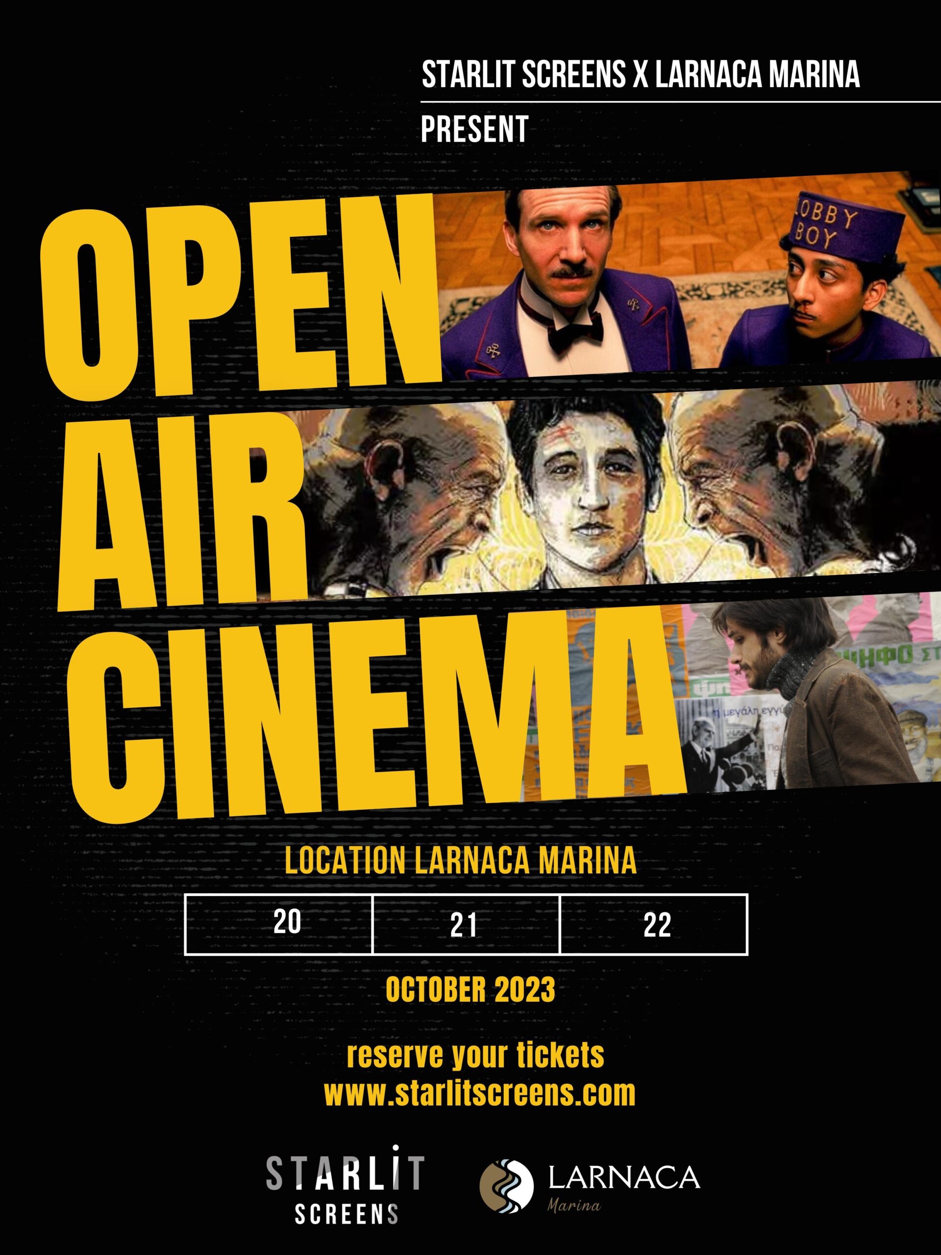Η εταιρεία Starlit Cinemas, μεταφέρεται στην Λάρνακα από την Λεμεσό, για 3 συνεχόμενες μέρες, παρέχοντας τη δυνατότητα σε οικογένειες και όσους επιθυμούν, να απολαύσουν εναλλακτική ψυχαγωγία θέασης, δίπλα από τα σκάφη της Μαρίνας, σε ένα ευχάριστο χώρο για μικρούς και μεγάλους, με μια γιγαντοοθόνη η οποία θα στηθεί γα τις ανάγκες του υπαίθριου cinema.