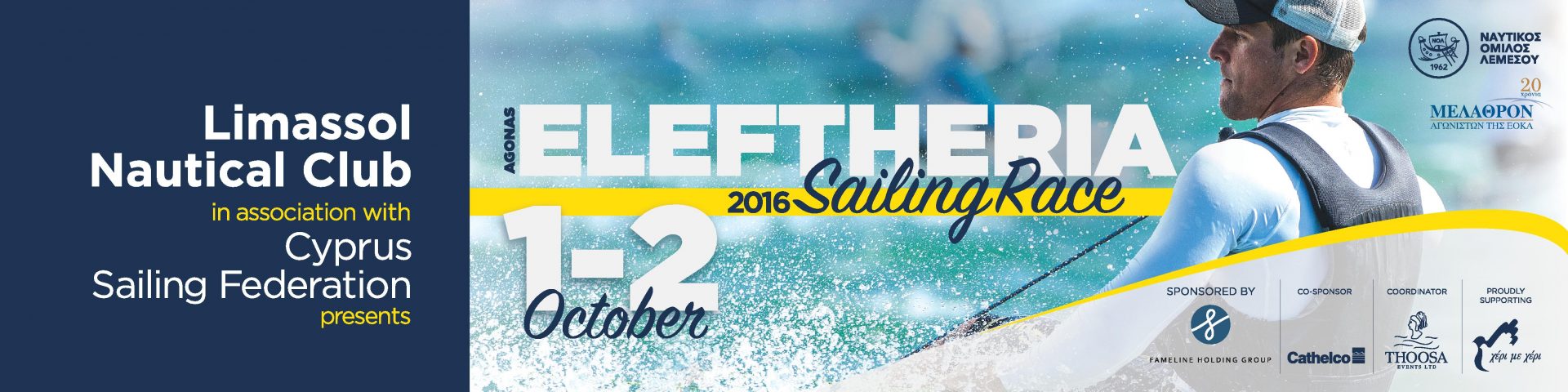 Ο Ναυτικός Όμιλος Λεμεσού, μέσα στα πλαίσια της κοινωνικής του προσφοράς και ανταποκρινόμενος στο κάλεσμα του Μελάθρου Αγωνιστών ΕΟΚΑ, διοργανώνει για τέταρτη συνεχή χρονιά, στις 1 – 2 Οκτωβρίου 2016, Ιστιοπλοϊκούς Αγώνς ‘Αγώνες ΕΛΕΥΘΕΡΙΑΣ’.