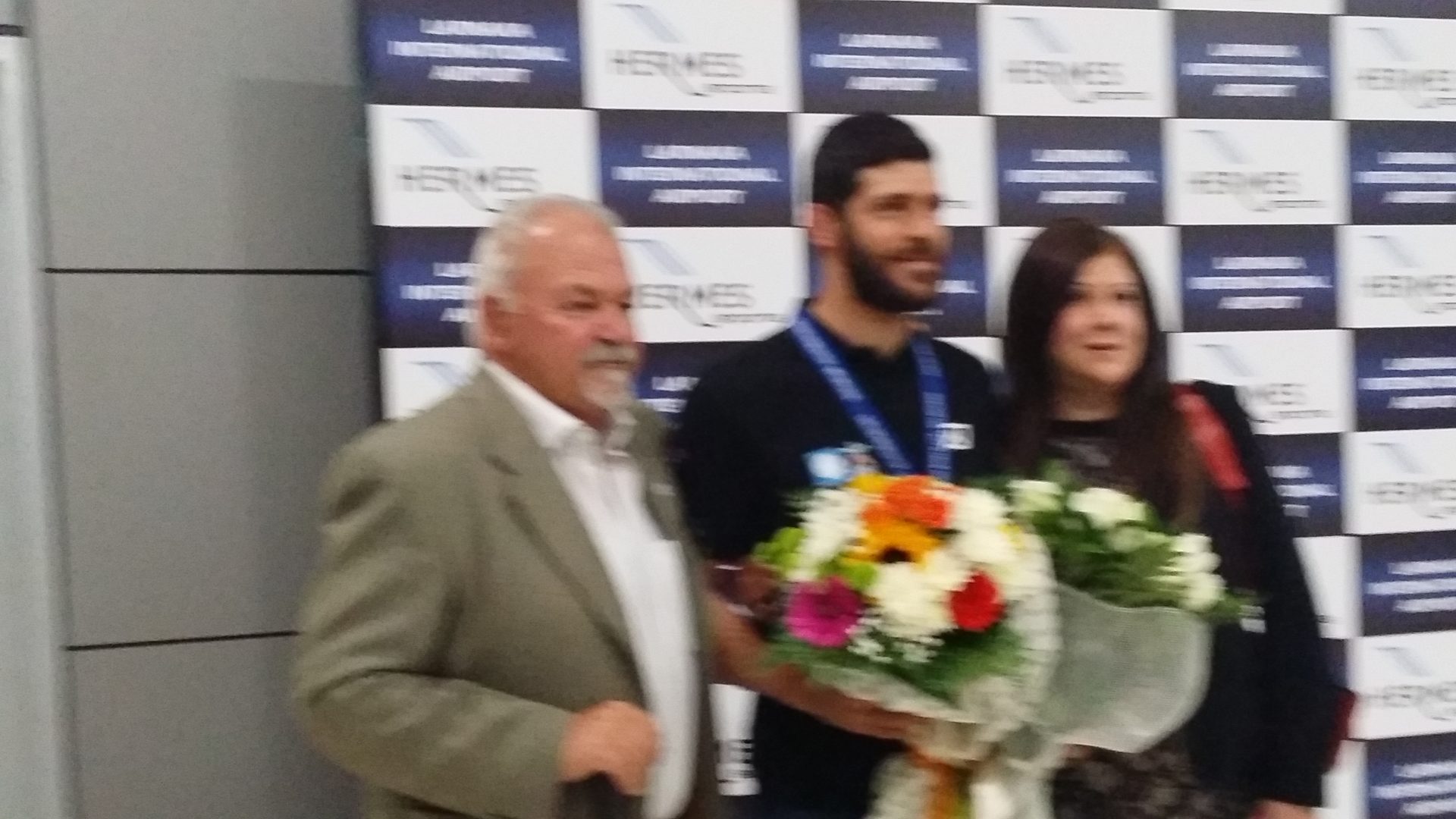 Στο αεροδρόμιο Λάρνακας δεν θα μπορούσαν να μην βρίσκεται και αντιπροσωπεία της Ομοσπονδίας καθώς και συγγενείς και φίλοι του Παύλου Κοντίδη για να τον υποδεχθούν και να του σφίξουν το χέρι. Πρώτοι και καλύτεροι οι γονείς του οι οποίοι ήταν ευτυχισμένοι και περήφανοι.