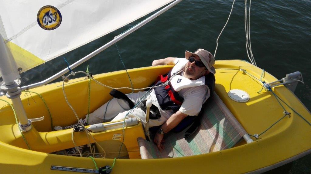 Στις βόλτες εκείνες όμως μου έδινε πάντα το πηδάλιο του διθέσιου σκάφους ο εθελοντής-εκπαιδευτής, που καθόταν μέσα στο σκάφος μαζί μου στα αριστερά μου, χειριζόταν τα δύο πανιά του αφού τον είχα ενημερώσει ότι μπορώ να το χειριστώ. Με αυτόν τον τρόπο όμως, αποκτούσα εμπειρία και πήγαινα όλο και καλύτερα με τον καιρό. Ακόμη, και οι άλλοι στην ομάδα έβλεπαν τις πλόες μου και το ότι δεν τις έκανα ως επιβάτης απλώς αλλά, ως κυβερνήτης του σκάφους. Επίσης έβλεπαν ότι θα μπορούσα κάποια στιγμή στο μέλλον να αρμενίζω με σκάφος ειδικά εξοπλισμένο με τον μηχανισμό υποβοήθησης.