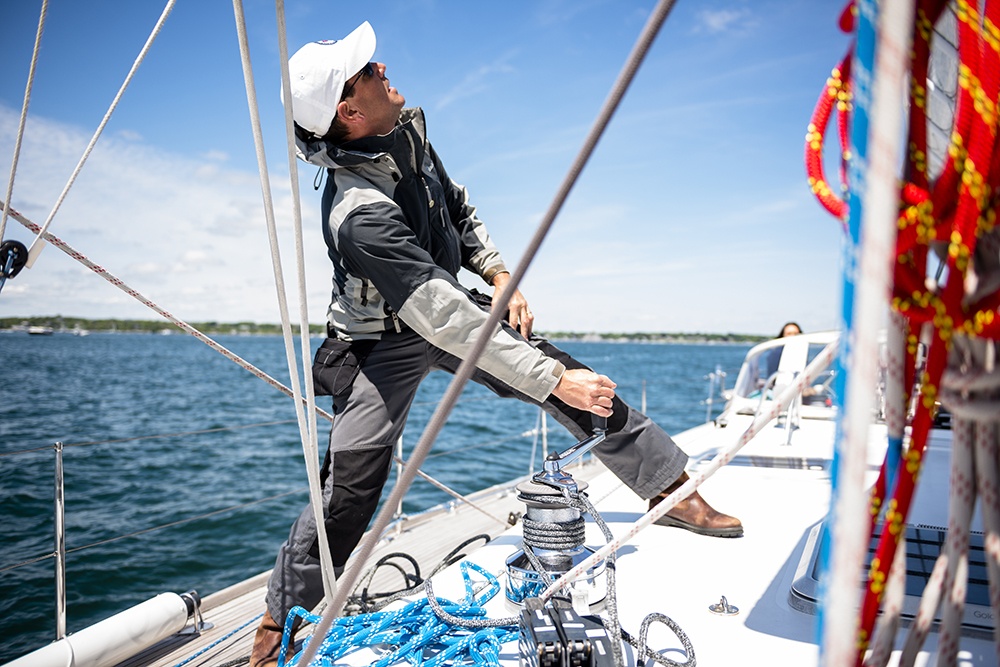 – Το τριμάρισμα να θυμάστε πάντα ξεκινά από το βιράρισμα των πανιών. Είναι αδιανόητο να βλέπω <εκπαιδευτές> να βιράρουν την μαΐστρα και να έχουν το Μπαλαντσίνι και το Boom Vang (kicking strap) φέρμα. Το σωστό βιράρισμα Μαΐστρας και Genoa θα μας βοηθήσει πολύ μετά στο τριμάρισμα.